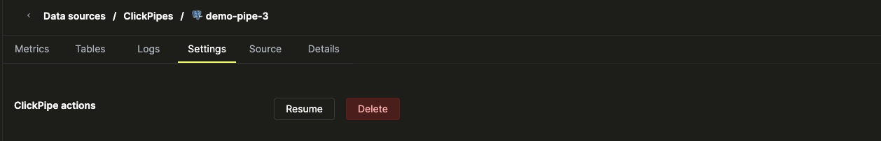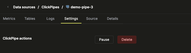 1. На вкладке Data Sources нажмите на Postgres ClickPipe, который вы хотите приостановить.