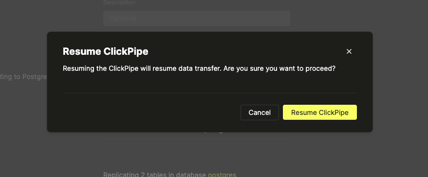 В некоторых сценариях может быть полезно приостановить Postgres ClickPipe. Например, вы можете захотеть провести аналитику по существующим данным в статичном состоянии. Или вы можете выполнять обновления в Postgres. Вот как вы можете приостановить и возобновить Postgres ClickPipe.